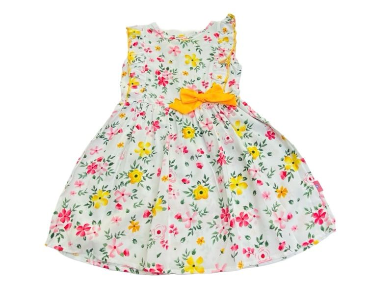 Vestido Blanco Estampado de Flores con Moño para Niña